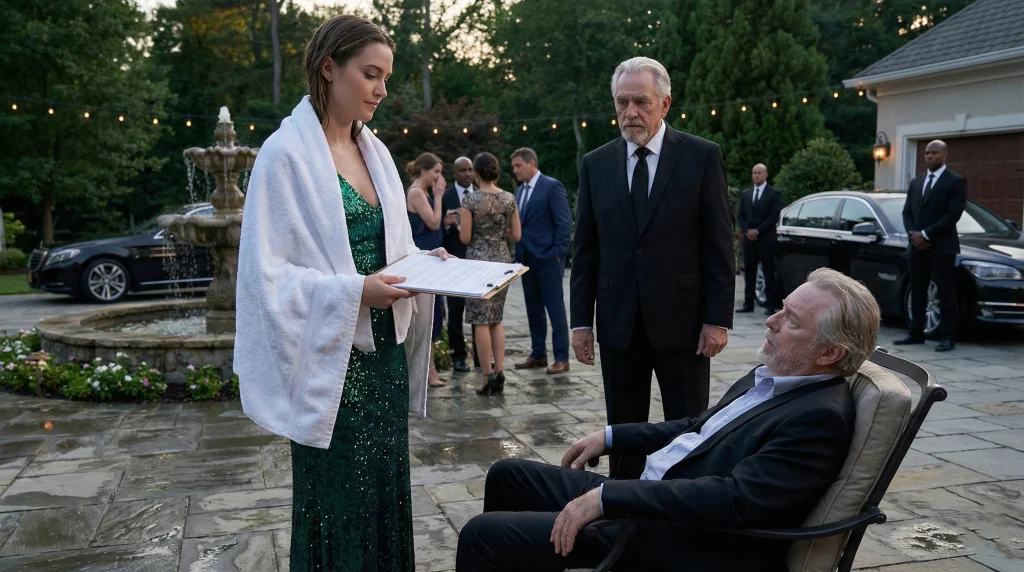 The party tried to recover. Music resumed. I wrapped a towel around my shoulders and stayed. Calm. Polite. I even helped pour drinks.