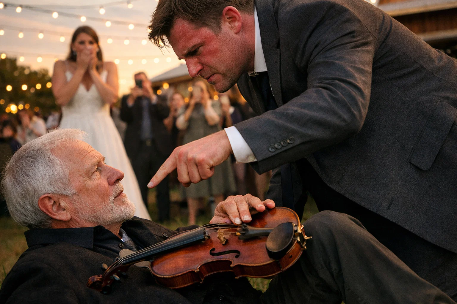 The bride’s father stepped forward. His hand was already on his phone.